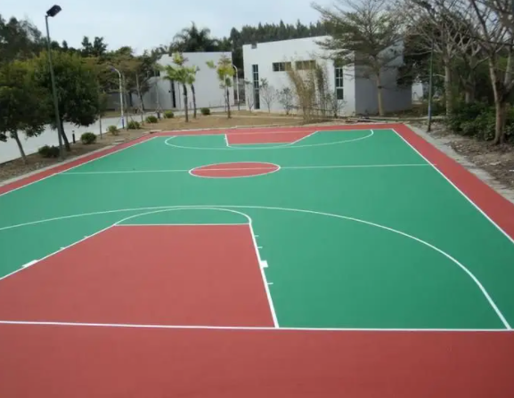 硅pu籃球場現場圖 硅PU籃球場是一種專為籃球比賽而設計的高品質地面材料。它采用了優質的聚氨酯材料和硅P...